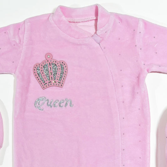 طقم المستشفى والسبوع 4 قطع قطيفة مع كوفرته مبطن فرو