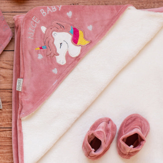طقم المستشفى والسبوع 4 قطع قطيفة مع كوفرته مبطن فرو