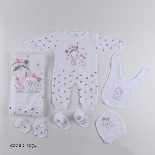 طقم السبوع والمستشفى قطن مع كوفرته طبقتين لحديث الولادة