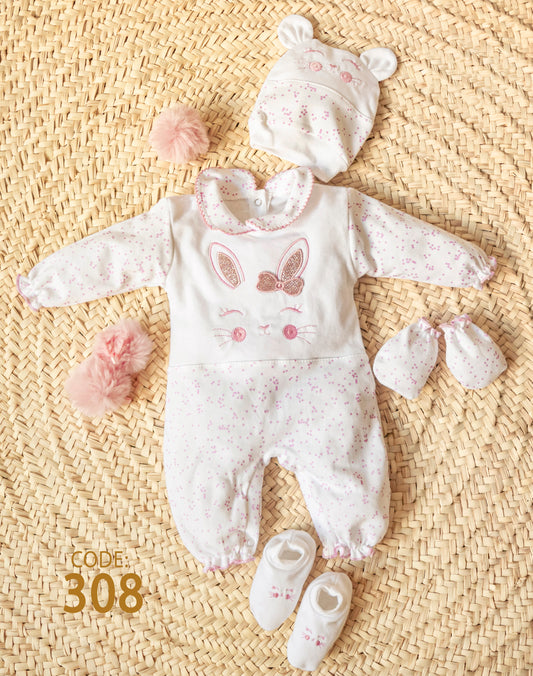 طقم قطن ميلتون مبطن وبرة لحديث الولادة - شتوي