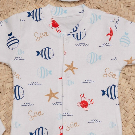 بدلة السبوع أبيض ساده قطن لحديث الولادة