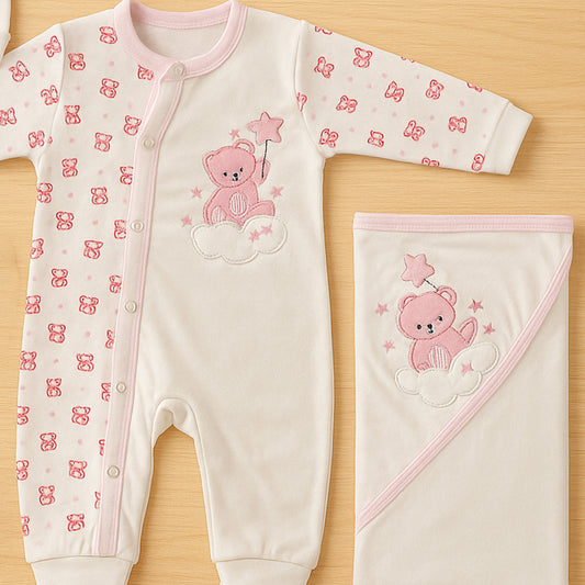طقم المستشفى والسبوع 4 قطع قطيفة شتوي