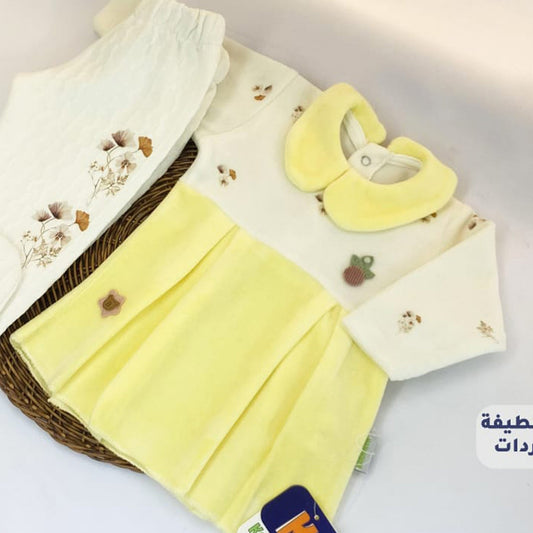 فستان قطيفة مع بنطلون شتوي لحديث الولادة
