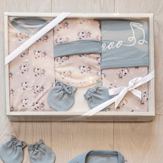 جيفت بوكس طقم السبوع والمستشفى 5 قطع قطن لحديث الولادة - جونيور