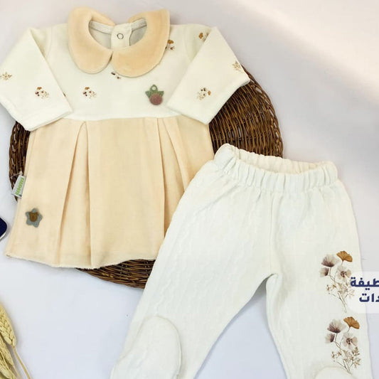 فستان قطيفة مع بنطلون شتوي لحديث الولادة