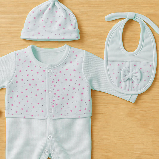 طقم السبوع والمستشفى قطن مع كوفرته طبقتين لحديث الولادة