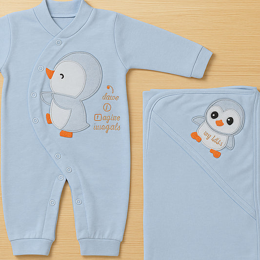 طقم السبوع والمستشفى قطن مع كوفرته طبقتين لحديث الولادة