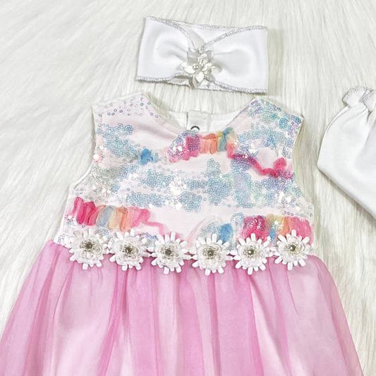 Sold outفستان السبوع لحديث الولادة 4 قطع
