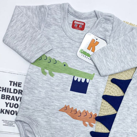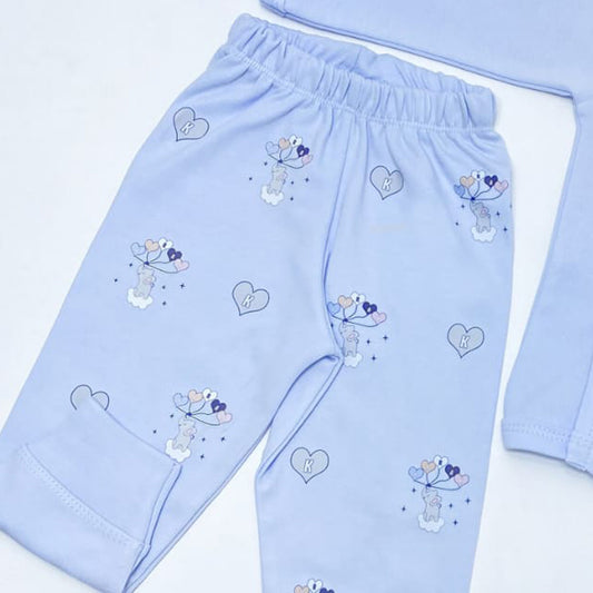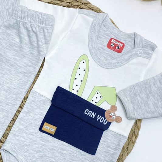 طقم قطن ميلتون مبطن وبرة لحديث الولادة - شتوي