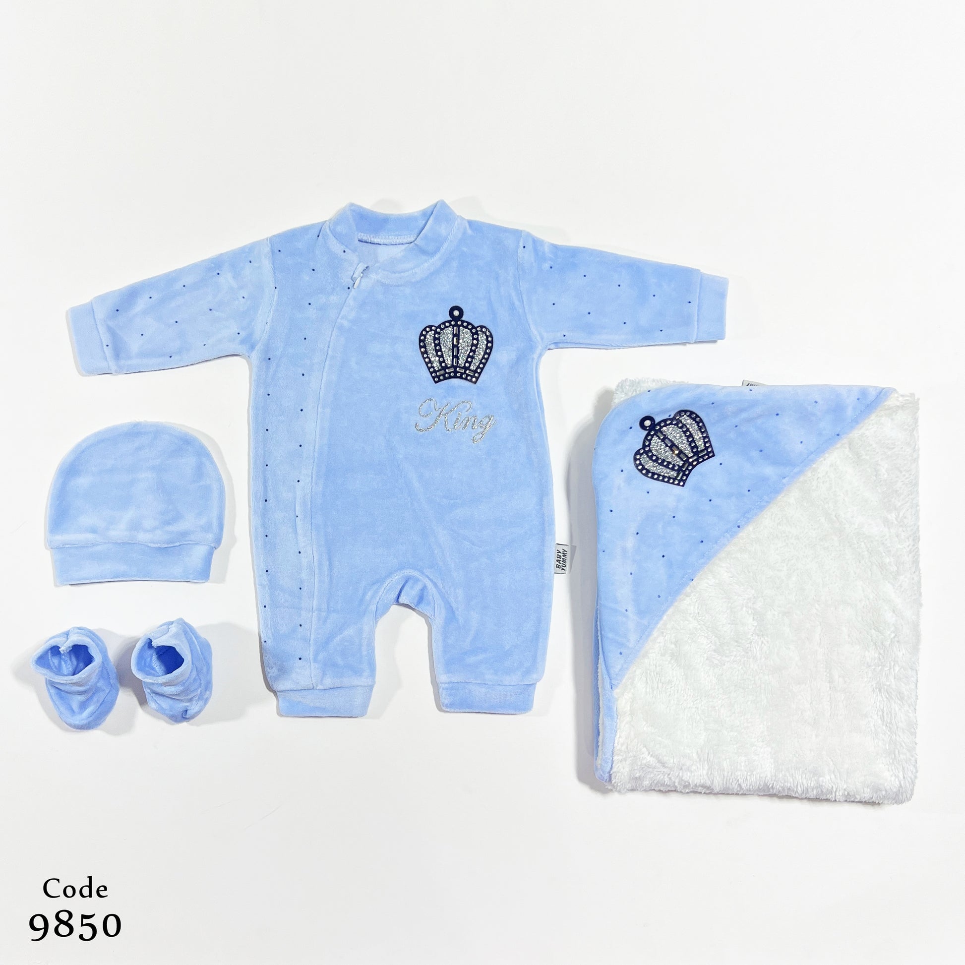 طقم المستشفى والسبوع 4 قطع قطيفة مع كوفرته مبطن فرو